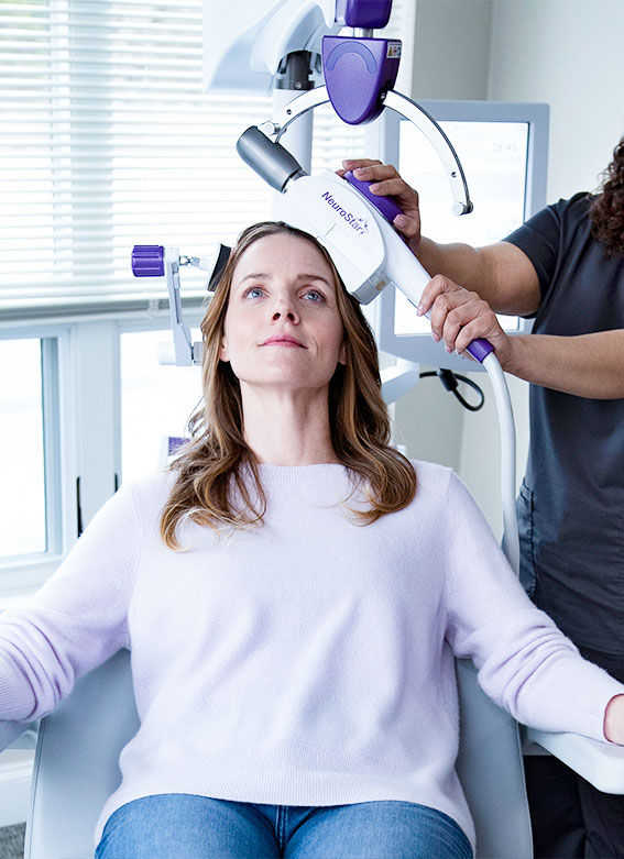 NeuroStar delivers focused magnetic stimulation directly to the target areas of the brain. You’ll hear a clicking sound and feel a tapping sensation on your head.