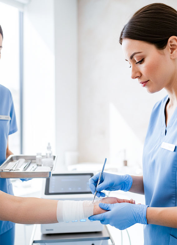 Our center is staffed with a unique team of doctors, nurses, and therapists, all specialized in wound care and dedicated to your recovery. We develop personalized treatment plans tailored to your specific needs, ensuring the best possible outcomes. Using the latest techniques and advanced technology, we promote faster healing. Plus, our treatments are covered by all insurance plans, making your care accessible and affordable.